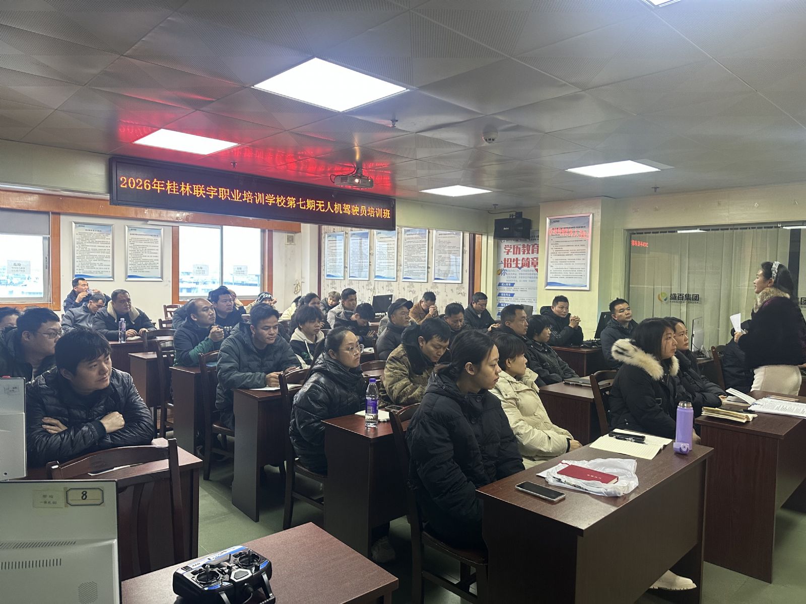 为积极响应国家低空经济发展战略,提升劳动者就业技能与市场竞争力,2026年1月27日,由秀峰区人力资源和社会保障局主办、桂林联宇职业培训学校承办的秀峰区第七期无人机驾驶员政府补贴培训班,于今日在桃园大厦八楼教室正式开班。