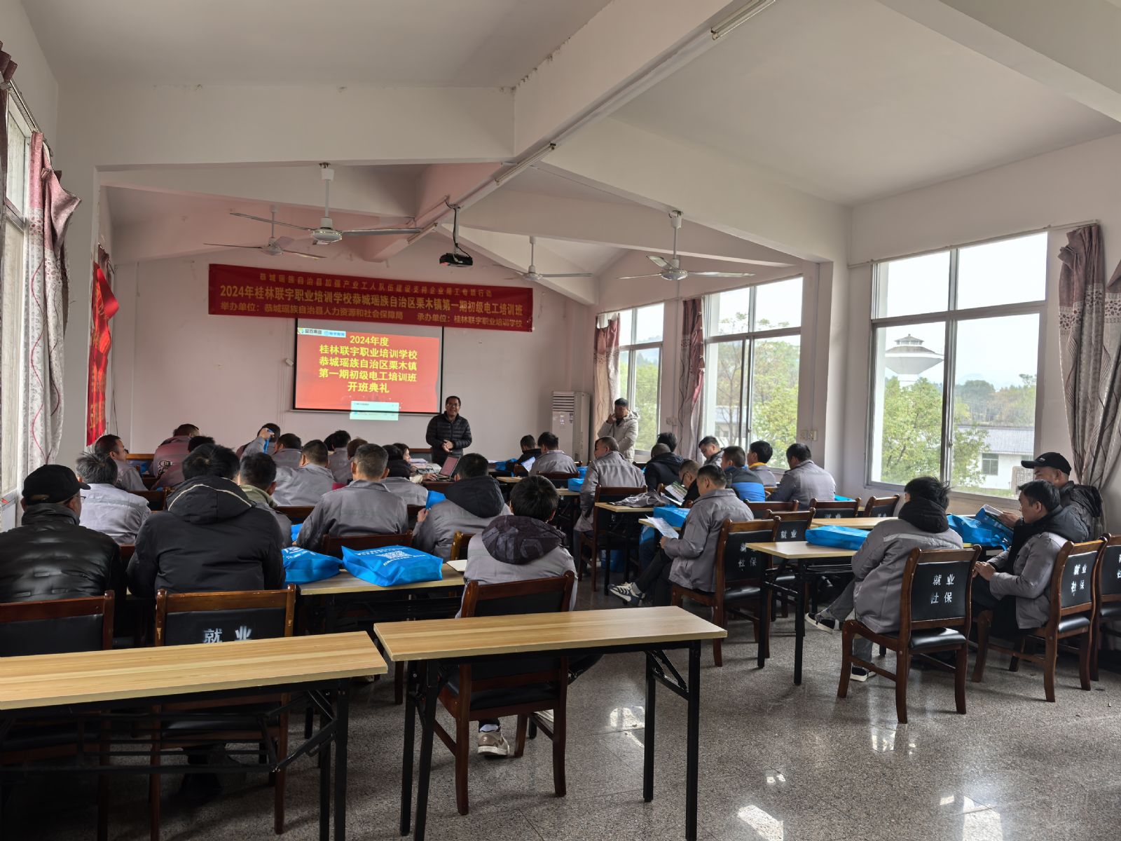 为更好拓宽返乡人员、待业农民工的创业就业渠道,提高创业就业技能,增强致富能力。12月13日,由恭城县人力资源和社会保障局主办、桂林联宇职业培训学校承办的栗木镇2024年第一期免费电工培训班在栗木镇就业服务中心教室开班。