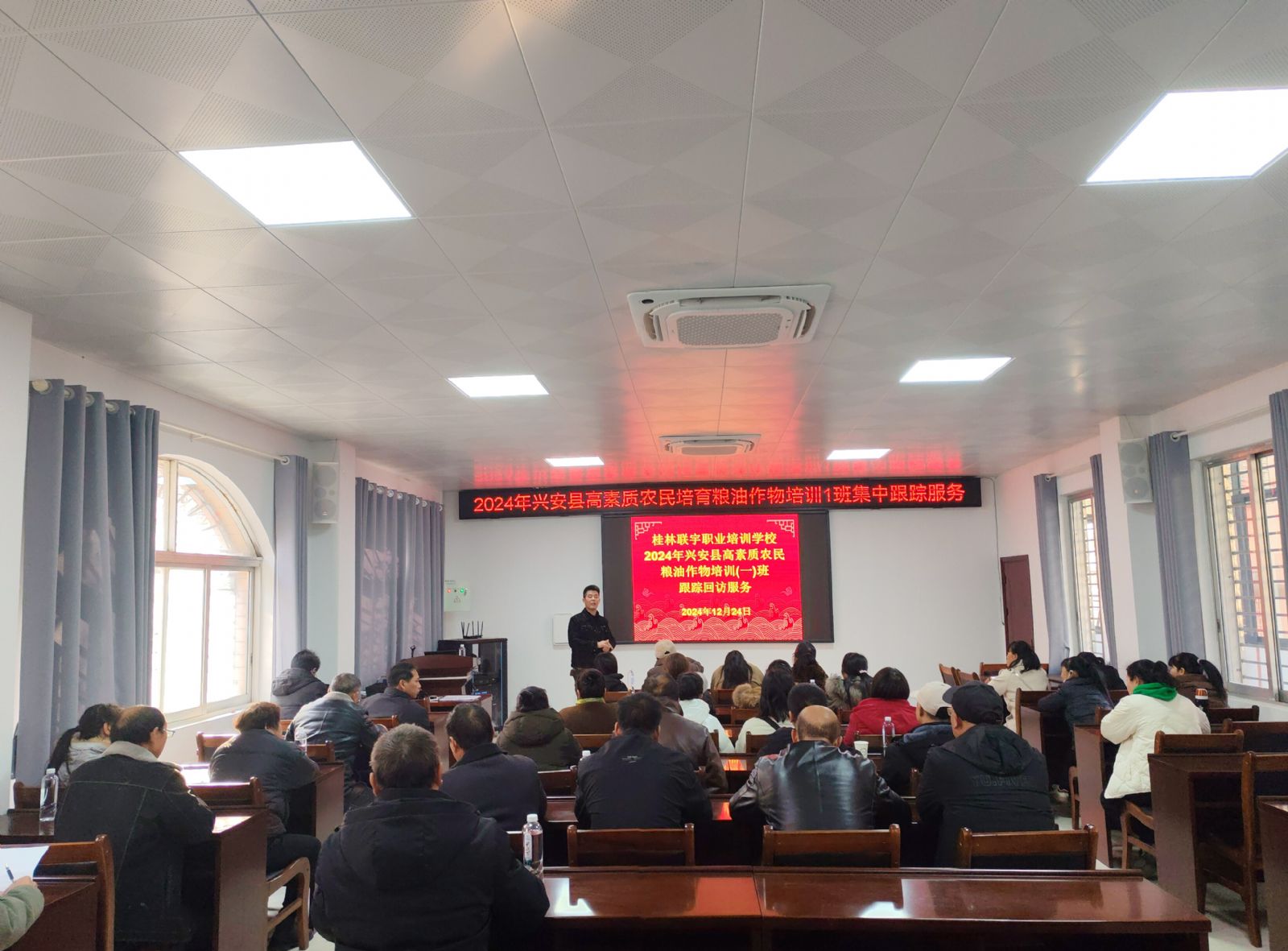 12月24日,由兴安县农业农村局主办、桂林联宇职业培训学校承办、的兴安县高素质农民跟踪服务工作顺利完成。此次跟踪服务旨在进一步巩固高素质农民培育成果,强化后续跟踪服务,确保培育工作取得实效。来自兴安县60余名水稻种植户参加培训。