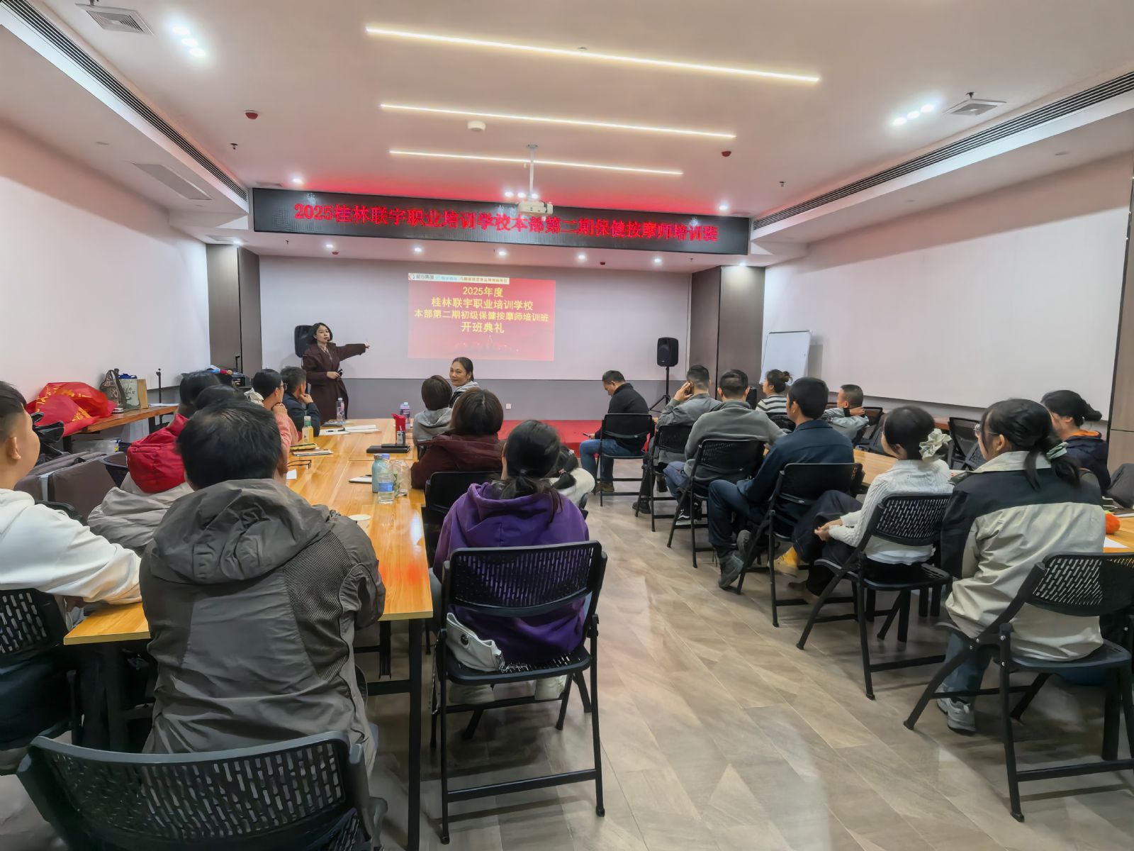 在政府大力推动职业技能提升、促进就业的背景下,桂林联宇职业培训学校积极响应政策号召,于2025年11月2日,在桂林健康城三楼会议室隆重举办了2025年第二期政府补贴保健按摩师培训班开班仪式。