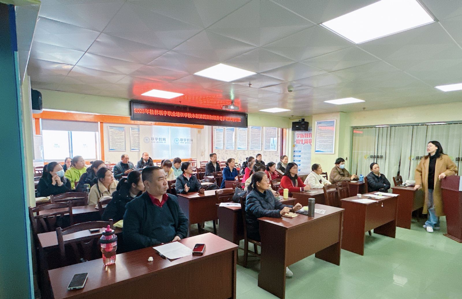 11月28日上午,桂林联宇职业培训学校“2025年第四期政府补贴初级养老护理员培训班”在桃园大厦八楼教室顺利开班。来自全市各街道、乡镇的28名城乡劳动者、养老机构在岗员工及有意向从事养老服务的社会人员,将在今后8天内完成初级养老护理员的系统培训与技能考核。
