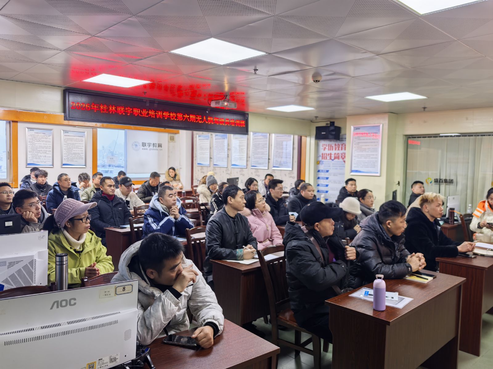 2026年1月24日,由秀峰区人力资源和社会保障局主办、桂林联宇职业培训学校承办的“2026年第六期无人机驾驶员培训班”正式开班。本期培训为期八天,旨在抢抓低空经济发展战略机遇,高质量培养高素质技能人才,学员通过系统学习与考核后,将获得国家认可的无人机驾驶员初级证书。