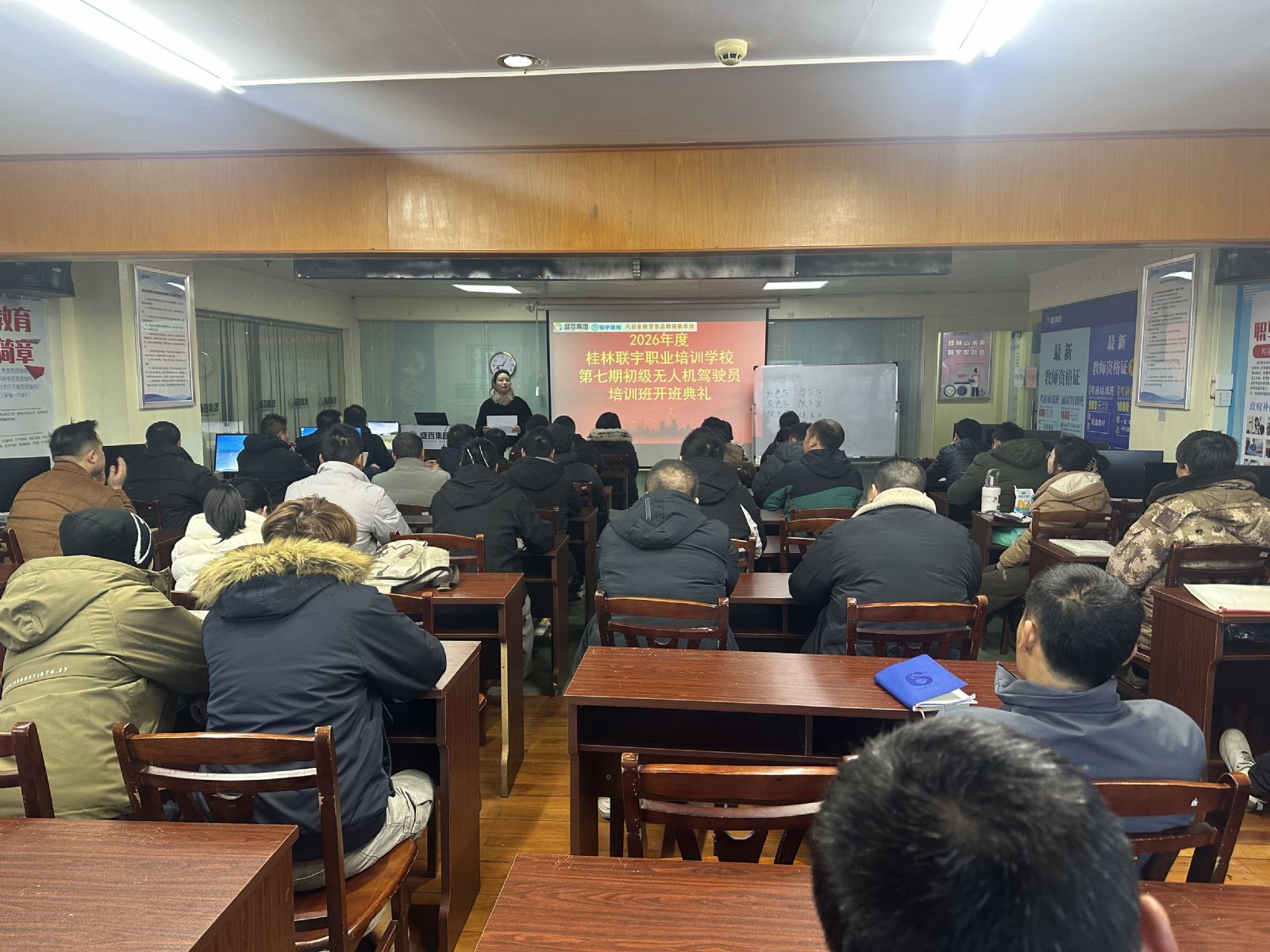 为积极响应国家低空经济发展战略,提升劳动者就业技能与市场竞争力,2026年1月27日,由秀峰区人力资源和社会保障局主办、桂林联宇职业培训学校承办的秀峰区第七期无人机驾驶员政府补贴培训班,于今日在桃园大厦八楼教室正式开班。